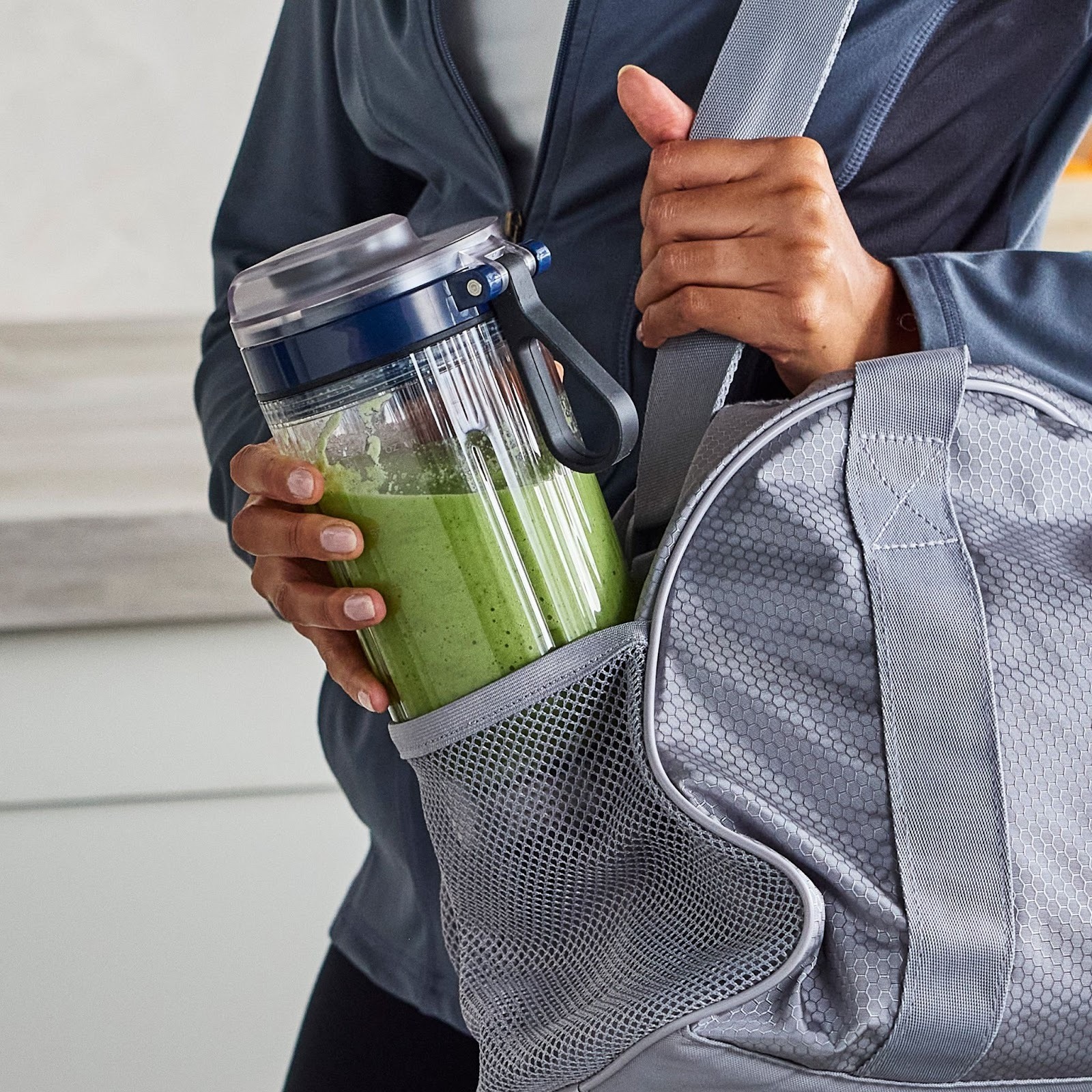 The compact size makes it easy to carry, while the comfy handle and spill-proof lid mean you can blend confidently and still keep moving without worrying about mess or awkwardness. There’s no messy transferring to a drinking container, no worrying about leaks, and no slowing down. You just blend, grab, and go.