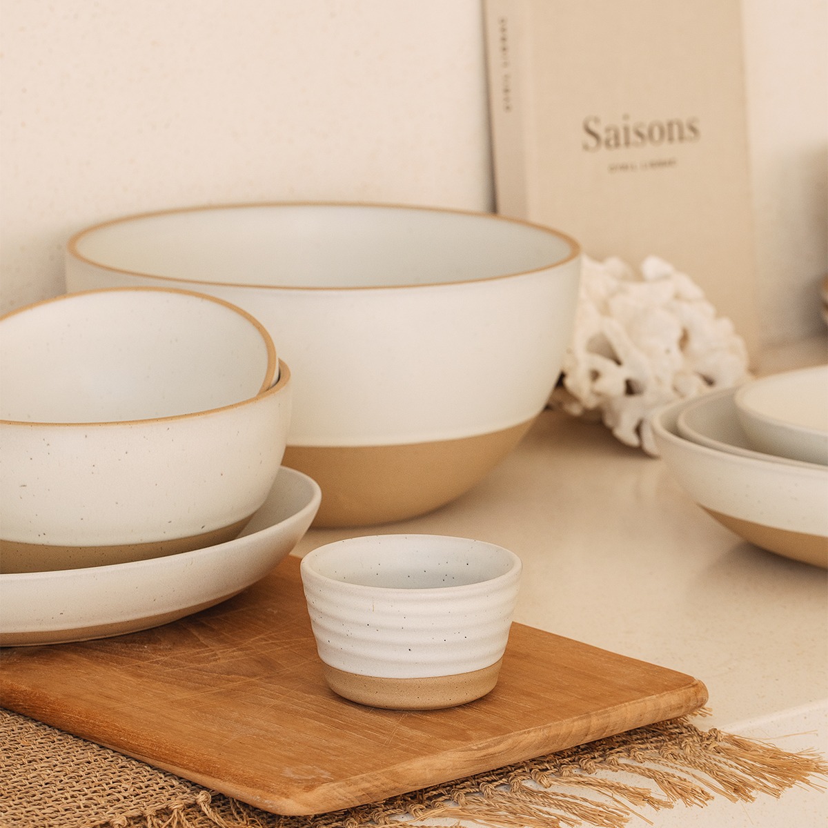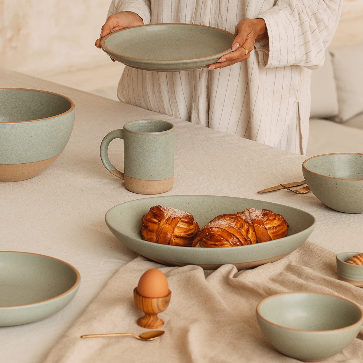 Mora’s pieces are built from their own formulated clay called Paladin Clay™, engineered to be 20% stronger than standard stoneware, fired slowly at high temperatures to build strength and durability, and suited for being used on the daily. I’m talking your morning coffee, lunchtime sandwich and dinnertime pasta and roast chicken - it can handle it all, and the crockery stands up incredibly to daily use because it’s so dense and resistant.